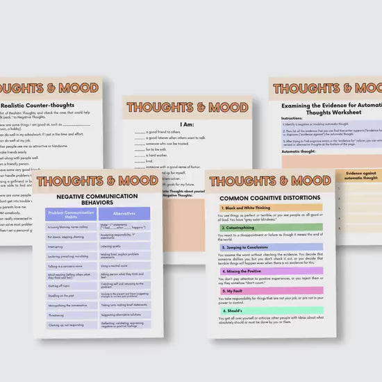 🔹 CBT Worksheets – Challenge cognitive distortions, track thoughts, reframe beliefs